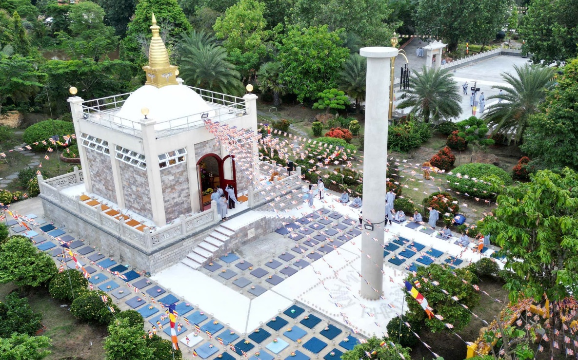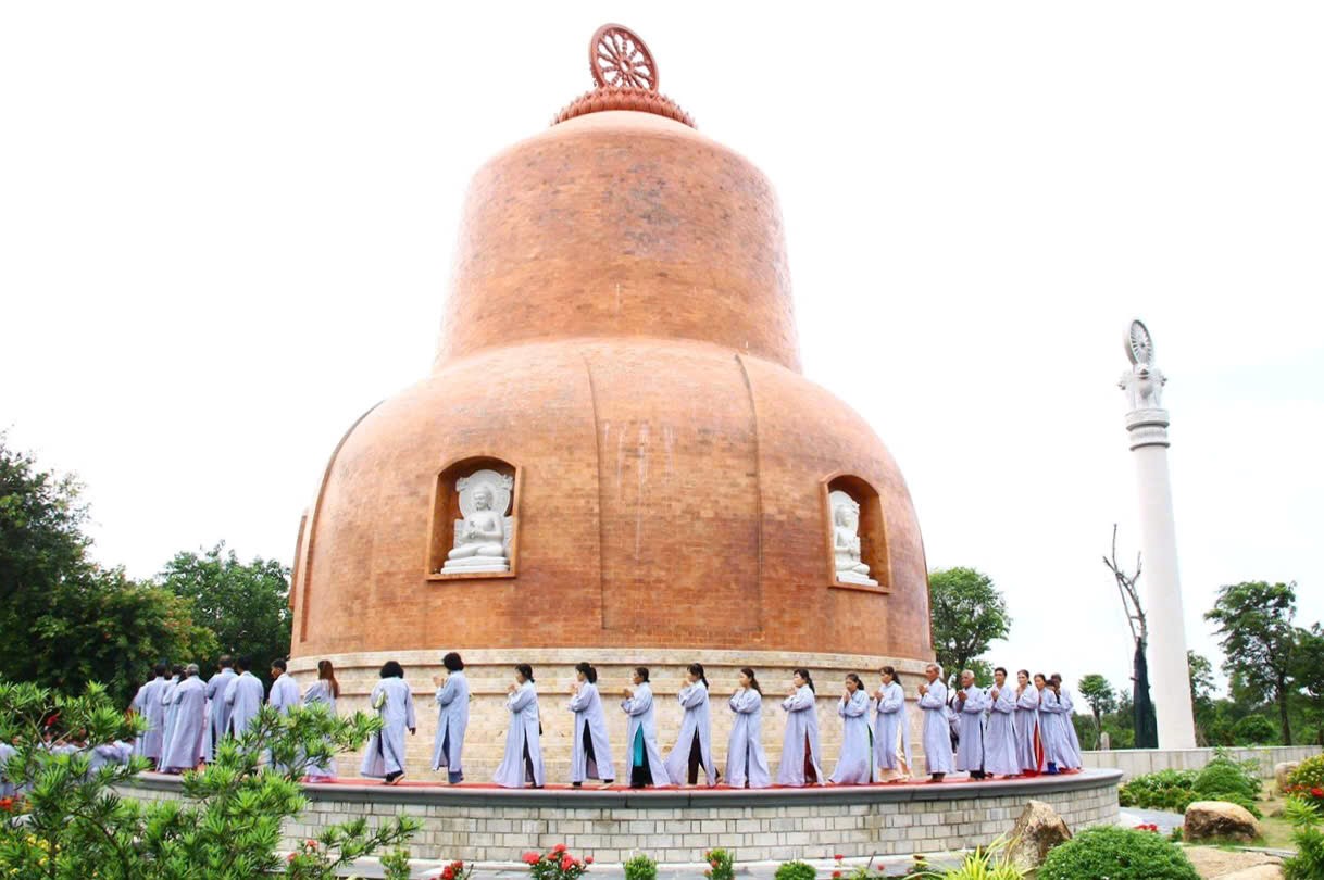 The Tu Dong Tam complex in Truc Lam Chanh Giac was developed to symbolically recreate these four major milestones, allowing Vietnamese Buddhists to pay homage and practice without traveling overseas. The structures are arranged harmoniously within a green landscape, combining Buddhist architecture with the natural characteristics of Dong Thap province.